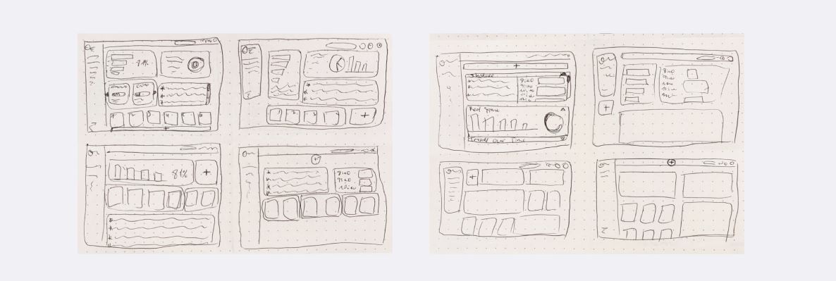 I explored numerous dashboards and began sketching ideas, searching for ways to combine important visual data with the text insights I imagined.