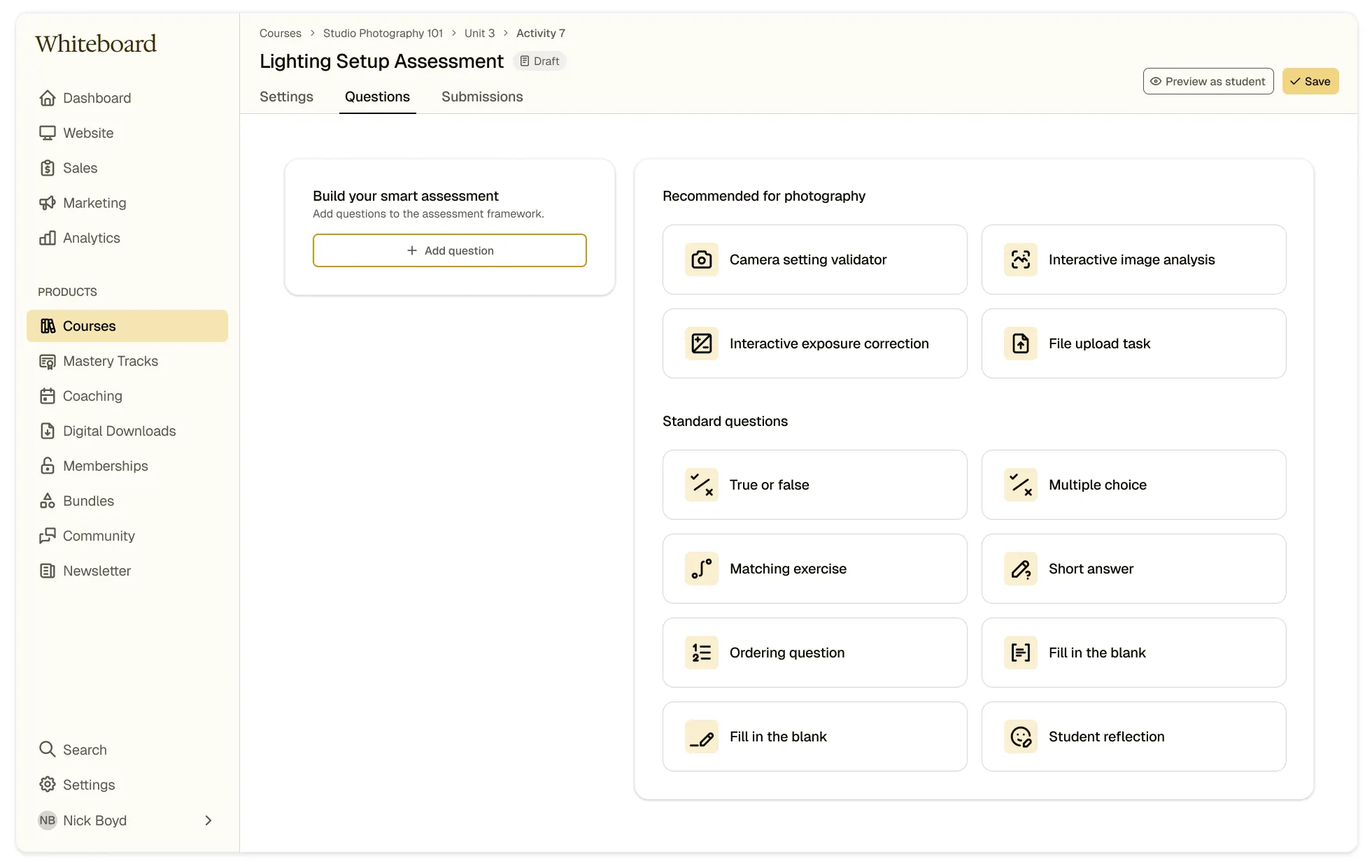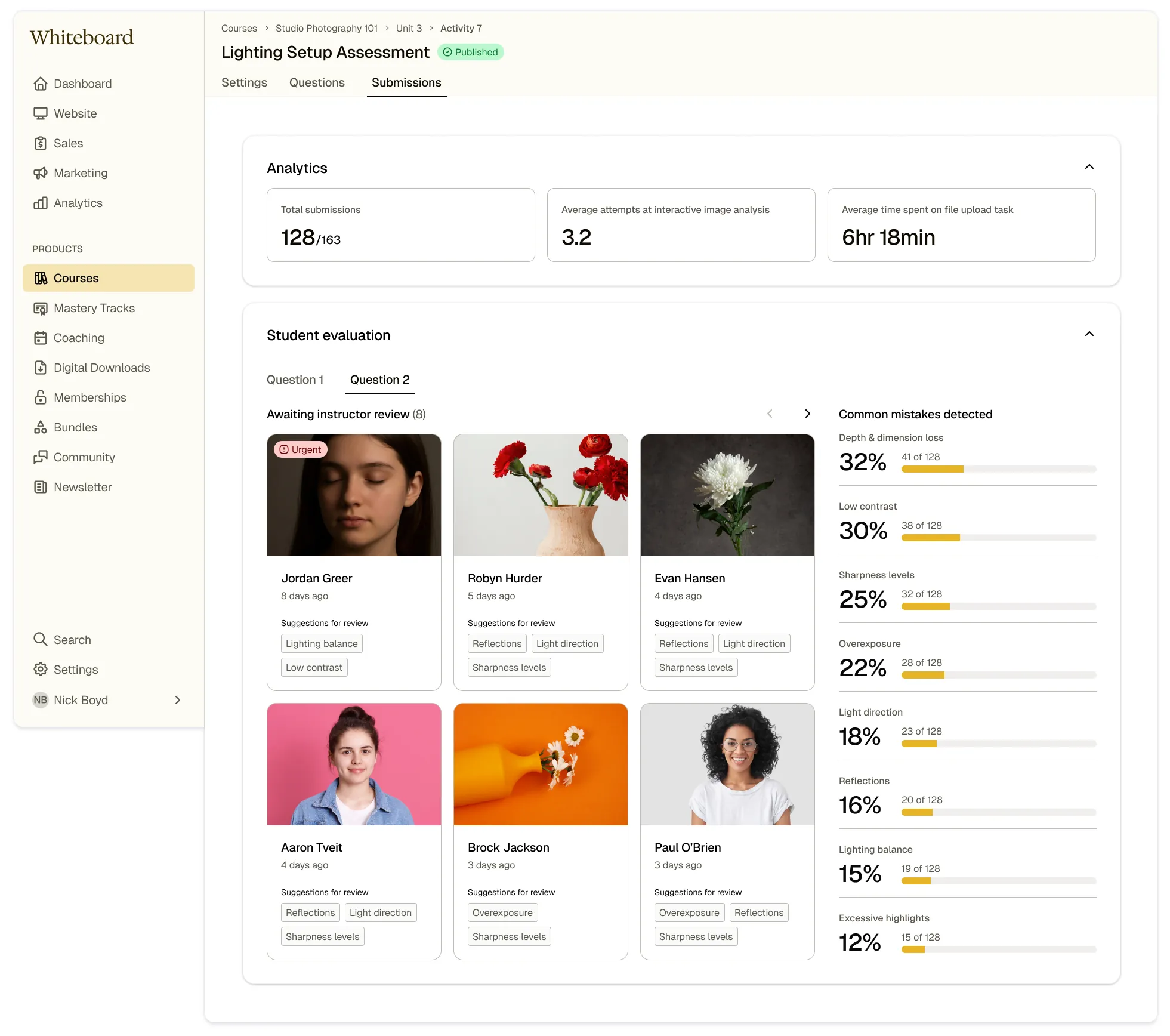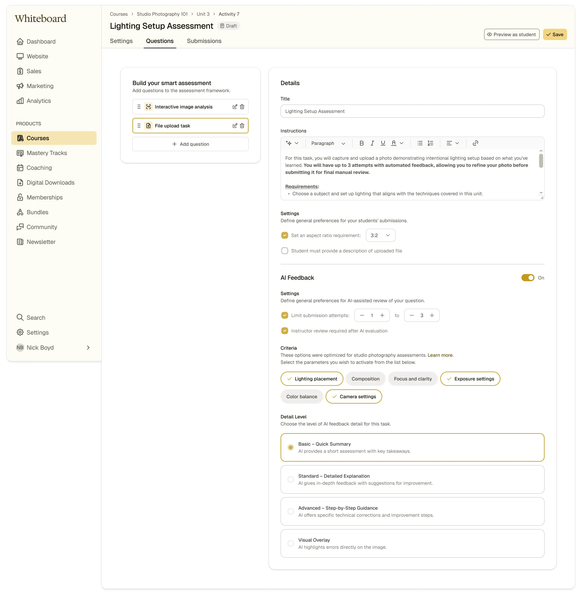 The platform automatically analyzes elements such as composition, exposure, and adherence to specific technical guidelines. This process can be iterative—students receive immediate technical feedback and have the opportunity to refine their submission before presenting it to the instructor.